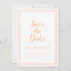 Meddela din kommande begivenhet med våra moderna och enkla persikofärgade och vita "Save The Date" bröllopskort! Inbjudan serien har en minimalistisk design med en dubbel ramkant i modern persikofärg på en krispig vit bakgrund. Traditionell formulering ger tidlös men ändå modern sofistikation. Personifiera bröllopsdesignen med era förnamn och datum i persikofärgad skrift och typsnitt. Baksidan av kortet har samma enfärgade persikofärg.