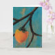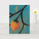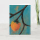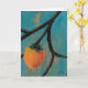 Persimmons mogna under hösten efter en bra hård frost och alla löv har fallit. Den här målningen är av en persimon på en bar gren, med blå bakgrund.