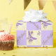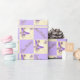 En Digitalbcon Bilder-design med två tonerstreck och lila färg i ett diagonalt format med olika anpassningsbar bilder, former, mönster, stilar och en guld-Grattis på födelsedagen-text i denna singeltyp Peach Lila Butterfly Birthday Wrapping Papper. Perfekt för din födelsedagspresent, den här designen levereras också med matchande tillbehör till födelsedagsfesten, inklusive inbjudningskort, knappar, magneter och kuvert för hela födelsedagsfesten!