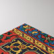 Persisk matta - Arabiskt konstmotiv, Emile Prisses d'Avennes, tryckt i boken La Decoration Arabe. (1885). Denna bild är en fotografisk reproduktion baserad på en antikk persisk matta med rik detaljrikedom och invecklad design. Den har ett djärvt, symmetriskt mönster i mitten med geometriska och blomsterliknande motiv. De dominerande färgerna är djupröd med inslag av guld, blått och grönt. Mattans kant har ett upprepat blomstermönster som tillför ytterligare ett lager av utsmyckad detaljrikedom. Hantverket framgår tydligt i de komplexa, invävda designelementen och de livfulla färgerna.