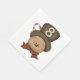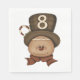 En person som bär en hatt med nummer 8 på den. Den här designen ser ut att vara effektiv på dessa Pappra servetter