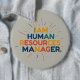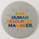 Den här rundade knappen förklarar stolt "Jag är personalchef". Perfekt för personalens professioneller till bära vid konferenser, seminarier eller på kontoret visar denna knapp vilken roll och expertis du har. Det är en snyggt och ett praktiskt sätt att identifiera sig själv.