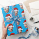 Personalised Face Santa Hat Blue Gift Wrap Presentpapper