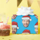 Personalised Face Santa Hat Blue Gift Wrap, Replace the face with your favorite photo if you want (make sure to crop as much to the face as possible and use an app to remove the background) and personalize this funny Christmas Holiday Wrapping Paper with your kid, husband, or boyfriend on it! Also a fun and unique surprise for grandma and grandpa, mom or dad.