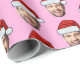 Personalised Face Santa Hat Pink Gift Wrap, Replace the face with your favorite photo if you want (make sure to crop as much to the face as possible and use an app to remove the background) and personalize this funny Christmas Holiday Wrapping Paper with your kid, husband, or boyfriend on it! Also a fun and unique surprise for grandma and grandpa, mom or dad.
