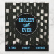 Visa honom att han är den kallaste på Fars dag, kallaste pappa som någonsin säger i en svart cirkel med blått typsnitt i en svart och vit abstrakts kvadratbakgrund.Du kan ange hans namn på grund med hjälp av mallen.