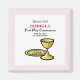 Skicka välsignelser och önskemål till en speciell flicka när hon gör sin första Heliga-förening. En guld-chalis och paten står ut mot den vita bakgrunden och rosa gräns i denna gåva, souvenir, gåva och party som är nödvändig. Trevligt att skickas till henne den här religiösan och heligan.
