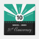Med siffran 10 på framsidan omgiven av hårt arbete i ord, fokuserat, användbart, hängivet och disciplinerat på en grönt bakgrund, är detta en underbar gåva, souvenir, gåva eller party som är nödvändig för att gratulera en utmärkt anställd till deras tioårsdag för anställda.