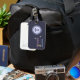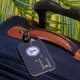 En fin och modern blå design för att identifiera paret, genom att lägga till resenärernas namn och första