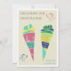 Personalisierbare Einladung zur Einschulung 2024 - digitaler Download oder als Karte. Das Design der Einladung zeigt eine schlichte elegante Anordnung von zwei bunten Schultüte.