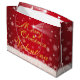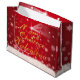 Eine personalisierbare Geschenktasche für Weinachten mit einem goldenen Schriftzug Merry Christmas mit Rot und Gold