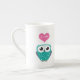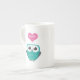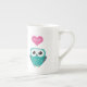 Personalizable för blåttuggla- och kärlekhjärta benporslin mugg