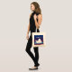 Yoga Cat Tote Bag Vit Kattunge med Lila och blå bakgrund personalisera med din egen Yoga-fras eller Namn
