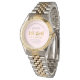 Celebrate a remarkable milestone with this exquisite Personalized 60th Birthday Watch for women. This elegant timepiece features a chic design in soft blush pink, perfectly accented with luxurious gold-look typography and a stylish two-tone silver and gold bracelet.