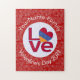 Personalized jigsaw puzzle features an Armenian LOVE FLAG. It features the word LOVE showing in red letters inside a white, fractal-style circle. The circle sits on a red, fractal-style background. Perfect for Valentine's Day or any special time. Travelers to Armenia will like this, too.