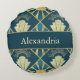 Personalized Art Deco Teal & Gold Geometric Name Rund Kudde