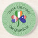 Celebrate shared heritage with this personalized shamrock round coaster featuring Australia, Ireland, and USA flags—perfect for St. Patrick’s Day, Australia Day January 26, USA Independence Day July 4, family reunions, and as a meaningful housewarming gift for multicultural homes.