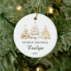 An elegant Baby's first Christmas ornament with three softly glowing holiday trees accented with gold details and warm light effects. This design allows full personalization, you can change the baby’s name, the year and also the adapt the "my first christmas" text, making it a perfect keepsake for celebrating a little one’s first Christmas. Ideal as a thoughtful gift for new parents, grandparents, or for adding a sentimental touch to your own holiday décor.