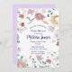 Personalized Baby Shower Invitation for a baby girl with floral border in pink and lavender colors.
