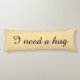 Personalized beige body pillows. Add custom text. Example: I need a hug. Elegant script typography. Long shape bedroom cushion for sleeping and hugging.