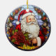A circular ceramic and glass Christmas ornament with a "Believe" Santa Church design, ready for personalization.