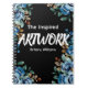 Personalized Black floral Artist Sketchbook The words, "The inspired Artwork of" in a hand drawn font with Your Name in Elegant Handwritten white Script Font Typography. You can Add you name or monogram or text using the customize menu.