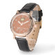 Refined and stylish, this personalized women’s watch features a warm caramel-tone dial accented with a regal crest and elegant typography. The rose-gold case adds a luxurious touch, beautifully complemented by the crisp white leather strap for a clean and modern finish.