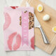 Personalized Chic Pink Leopart Print Lip Pattern Kökshandduk