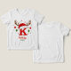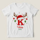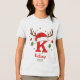 Create a one of a kind holiday keepsake with this festive personalized monogram. This design features the letter 'K' topped with a cute Santa hat and reindeer antlers, ready for your custom text. Click 'Personalize' to easily add a name and the year. Perfect for matching family shirts, custom stocking tags, or a special Christmas gift.
