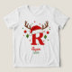 Create a one of a kind holiday keepsake with this festive personalized monogram. This design features the letter 'R' topped with a cute Santa hat and reindeer antlers, ready for your custom text. Click 'Personalize' to easily add a name and the year. Perfect for matching family shirts, custom stocking tags, or a special Christmas gift.
