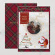 Celebrate the season with this charming personalized Christmas photo card, featuring a cozy red plaid background, golden snowflakes, a whimsical Christmas Tree and a adorable Santa with his reindeer. Add your favorite family photo and custom text for a warm and memorable holiday greeting. Perfect for sending love and cheer to friends and family this Christmas.