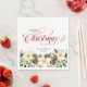 Personalized Christmas White Poinsettia Napkins. Beautiful Christmas Typography and Poinsettia Christmas floral arrangement.