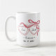 Celebrate your love with this personalized couple mug, featuring a minimal hand-drawn line art design with two hearts, custom names, and a meaningful date.
