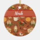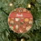 This personalized ceramic Christmas ornament brings warm, cozy vibes to your holiday tree with hand-drawn gingerbread cookies, oranges, candles, a winter bird, gifts, and a vintage lantern on a soft brown background. Add any name or short text in the editable banner to create a unique keepsake for kids, families, friends, teachers, or coworkers, perfect as a stocking stuffer, Secret Santa gift, or yearly family tradition. Simply click “Personalize” to change the name, font, and text color so your ornament matches your holiday style.