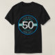 This modern and stylish black t-shirt is perfect for celebrating the milestone 50th birthday! It features a clean, bold circular design with a large customizable “50” in the center, plus two text fields above and below where you can add your own personal message, birth year, nickname, or funny quote. The sleek blue and white accents give it a premium, contemporary look that works great for both men and women. Easy to personalize and sure to be a favorite keepsake. Whether it’s for a big birthday party, a surprise gift, or just to celebrate turning 50 in style, this custom 50th birthday tee is comfortable, eye-catching, and uniquely yours.
