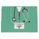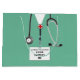 Creative medical school graduation congratulations gift bag for doctor featuring hospital scrubs and stethoscope. To personalize edit text to add doctor, physician assistant or nurse's name and medical credentials.