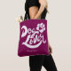 This cute tote bag is perfect for any dog lover. Carry around stuff for your dog or for yourself. It works either way and comes in different sizes to fit your needs. The text that appears on the front and back is hand-lettered and reads, "Dog Lover." There is also a hand-drawn paw print with a cut-out heart in the middle. The text is modern yet has a vintage vibe. On the front (bottom-center) is a spot for you to personalize or write your own custom text such as "Best Dog Mom" or "Luna's Mom." No matter if you keep it for yourself or gift it, this fun tote is sure to bring a smile to anyone any time they see it.