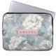 Personalized Elegant Blue and Cream Peony Floral Laptop Fodral