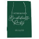 This solid emerald green bachelorette party gift bag features classic white script for a bride who loves the outdoors and nature. Celebrate your friend with this deep color on this chic, minimalist bachelorette party design.