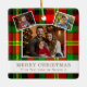 Personalized Family 3 Photo Green Plaid Christmas Julgransprydnad Keramik
