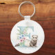 Personalized Floral Monogram 'F' with Cute Ferret Nyckelring
