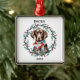Celebrate the holidays with a keepsake that’s as charming as your pup! This personalized dog Christmas ornament features a watercolor-style portrait of a brown dog wrapped in a cozy striped scarf, nestled inside a festive wreath of winter greenery and colorful holiday lights.