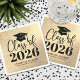 Just below the cap, “class of” is written in elegant handwritten script, followed by the class year, which can be customized to “Class of 2026” or any year. Beneath the year, the graduate’s name and school name are displayed in classic serif fonts for a polished, balanced finish.