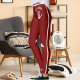 Personalized Hand Cat Pet Deep Red White Stripes Leggings