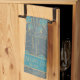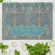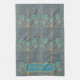 Personalized kitchen towel with a designer Art Deco Fountain tile hand drawn pattern by Anne Londez in dove gray and teal colors. Perfect for a new home hostess gift!