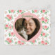 Send a message that truly comes from the heart with this beautiful, customizable postcard. The design features a centered heart-shaped photo frame where you can feature a favorite picture, accented by a lovely watercolor pattern of pink roses and tan paw prints. Above the photo, you can personalize the card with a custom name written in a graceful, green script.