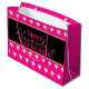 This Personalized design features a vibrant Hot Pink and black design with elegant Gold Heart accents. A stylish black stripe has the message "Merry Christmas" and space for you to add your name, perfect for your custom hot pink and black Christmas gift wrap and Holiday theme.