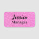 A personalized pink glitter name tag with pin or magnet backing, perfect for work badges, nurses, and custom gifts.