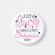 Add a personal touch to your locker with this personalized just a girl who loves badminton magnet. Featuring a vibrant pink design with space for a name, it is a wonderful badminton gift for girls. This shuttlecock player magnet is perfect for holding up match schedules and team photos with a girly sports aesthetic.