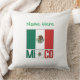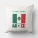 Personalized throw pillow featuring the Mexican flag on both sides, MEXICO in flag colors, and your name in green text. Ideal for Mexican family reunion décor, Mexican Independence Day Sept 16, Cinco de Mayo, birthdays, housewarming gifts, and meaningful cultural home accents.